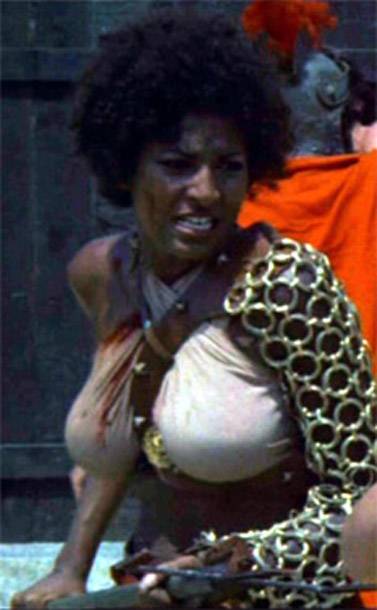 Gladiator for chicks: in the dark days of the decadence of the Roman Empire, Margaret Markov and Pam Grier are kidnapped at opposite ends of the Earth and sold into slavery in the circuses, where they end up dancing, serving drinks at orgies, and getting pawed over by fat disgusting Italian guys with hair on their backs. This wouldnt carry us very far, but when a picturesque foodfight reveals Pam to be the Chyna of her day a lightbulb goes off over somebodys head and the babes are sent to gladiator school, where they learn the rudiments of swordplay and how to sneer at fallen enemies; they do several star turns about the blood-and-sand circuit which repay their owners investment handsomely before the ugliness of it all registers, their political consciousness is raised, and they lead a slave revolt that sends many a motherfucker up against the wall.