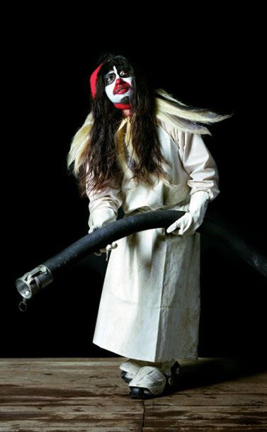 The celebrated artist Herr Barney and his even more celebrated paramour Björk are ferried separately to a Japanese whaler, subjected to elaborate ritual preparations for a wedding ceremony at the hands of a retinue of solemnfaced attendants, and then, partly as an expression of solidarity with our oppressed cetacean brothers but mainly in the spirit of good oldfashioned Surrealist fun, consummate their union by hacking one another to pieces with whaling knives.