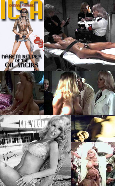Lifesized Nazi Barbie doll Dyanne Thorne [weighing in at 37/17/33] finds herself in this second installment of the Ilsa saga cast as the sadistic assistant to a psychopathic Arab ruler who kidnaps white women to serve as his love slaves. Peripheral characters are eaten by rats, consumed by flames, blown up in the act of sexual congress, and castrated by female assassins who rip genitalia off with their bare hands; a female love slave is auctioned off to the highest bidder, who then insists he wont take possession until her teeth are pulled. Ilsa herself once again makes the mistake of falling for a studly American spy, but tries to feed him to a tarantula anyway, just on general principles. The DVD release features color commentary by both director and star, who laugh at the folly that led them to make this feature using their real names, speculate about the future of the Ilsa franchise [
