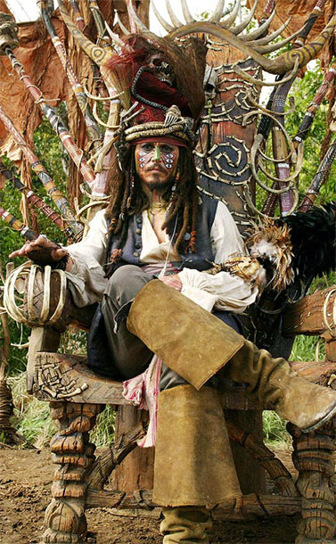 Thus impressed into service once again, our heroes dutifully buckle up their swash, and, after a couple of hours of fairly entertaining adventures during which Johnny is decorated with the dreaded Black Spot, elevated to a god among cannibals, and gets in touch with his inner Good Guy, Orlando finds his father [Stellan Skarsgard; seaweed is a good look for him] aboard the ship of the dead, Keira ships out disguised as a boy [how Shakespearean], Naomie Harris does a most excellent turn as a Voodoo fortuneteller [cf.